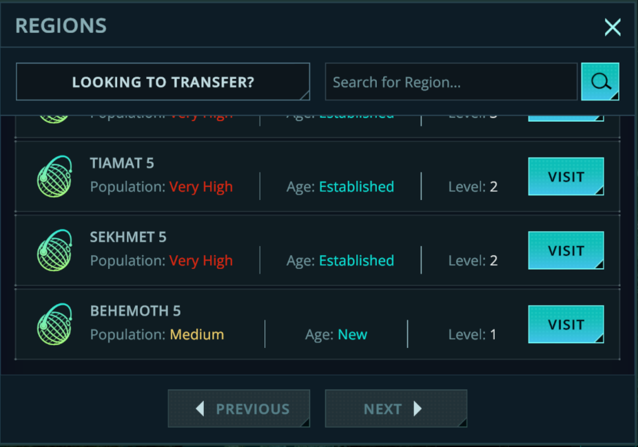 Puoi cambiare regione con la voce "Trasferimento regione nuovo giocatore".